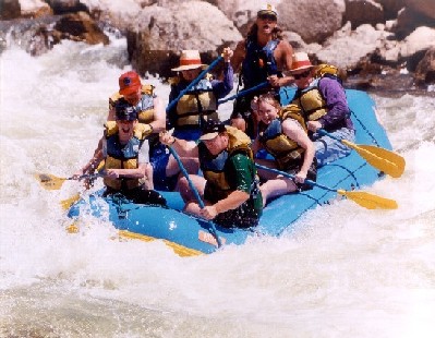 During the week of the Fourth of July our family went to Salida, CO with Veva's sister, Gloria, Grandma and Grandpa Adams, and Gloria's friends the Grants. We went whitewater rafting with Buel, Gloria's son. It was a blast. Even Veva went and had fun but half a day was enough for her after one of the Grant's fell in. If you want to see our picture, go to www.rugglesrelatives.org/steveruggles/rafting.htm