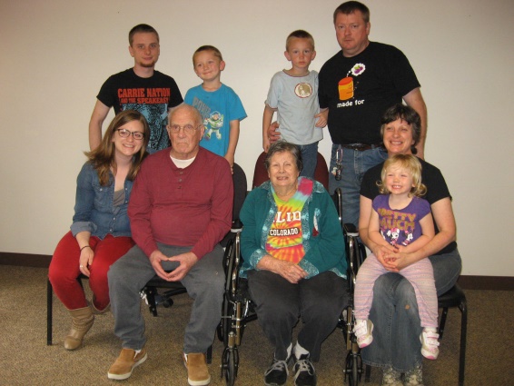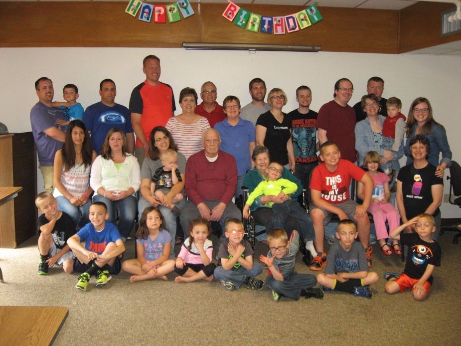 | Family get together were part of our year. Over Memorial Day Weekend, we started out first at Hoxie where Veva's family got together to celebrate 90 years of life for her dad. Thirty eight of us gathered together for ice cream party on Saturday and on Sunday a picnic dinner at the Sheridan Long Term Care where Mom and Dad find their home.