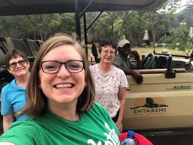 Gloria, Ruth and Veva petting some young lions.