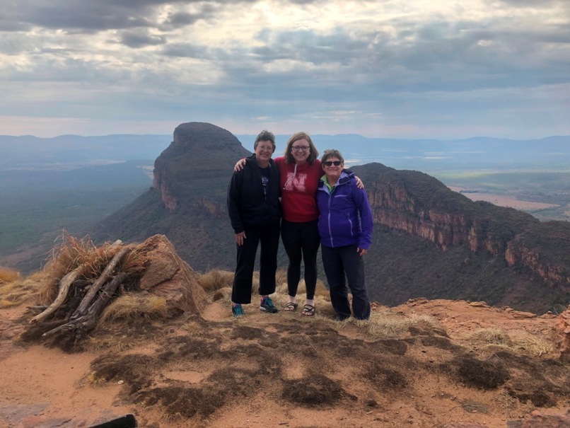 Gloria, Ruth and Veva hanging out together on top of a plateau.