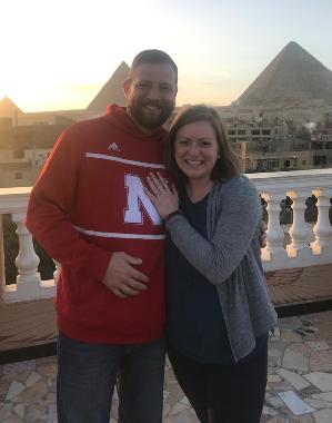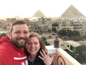 Keanon and Ruth celebrating their engagement while in Egypt.