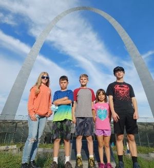 WE WENT ON A TWO-WEEK VACATION! We camped out most of the time. We found some really nice Campgrounds. We went to the St Louis Arch and went to the top. We stopped at Casey, Illinois and saw the biggest wind chimes, rocking chair, mail box, and other things. We went to the Creation Museum and the Ark Encounter. We stopped at Six Flags and rode a lot of rollercoasters, a Ferris Wheel and other rides. We ended our trip in Branson where we saw an illusionist and the Haygood Family Music Concert. It was a fun trip. We also spent time with the Ruggles Cousins in Kentucky and saw some old friends. Also this year Veva was able to hang out with the Adams Cousins while they |