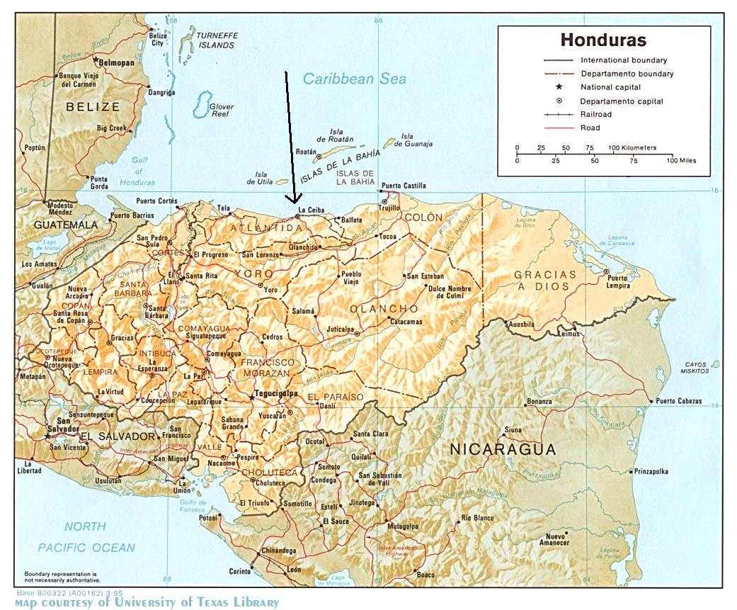 Here is a map of Honduras, with an arrow pointing to La Ceiba. Click here to see a map!!